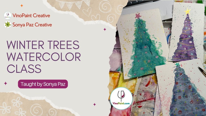 Create whimsical winter watercolor trees using stylish methods and exciting techniques with easy to follow lessons for making art, cards & gift tags!